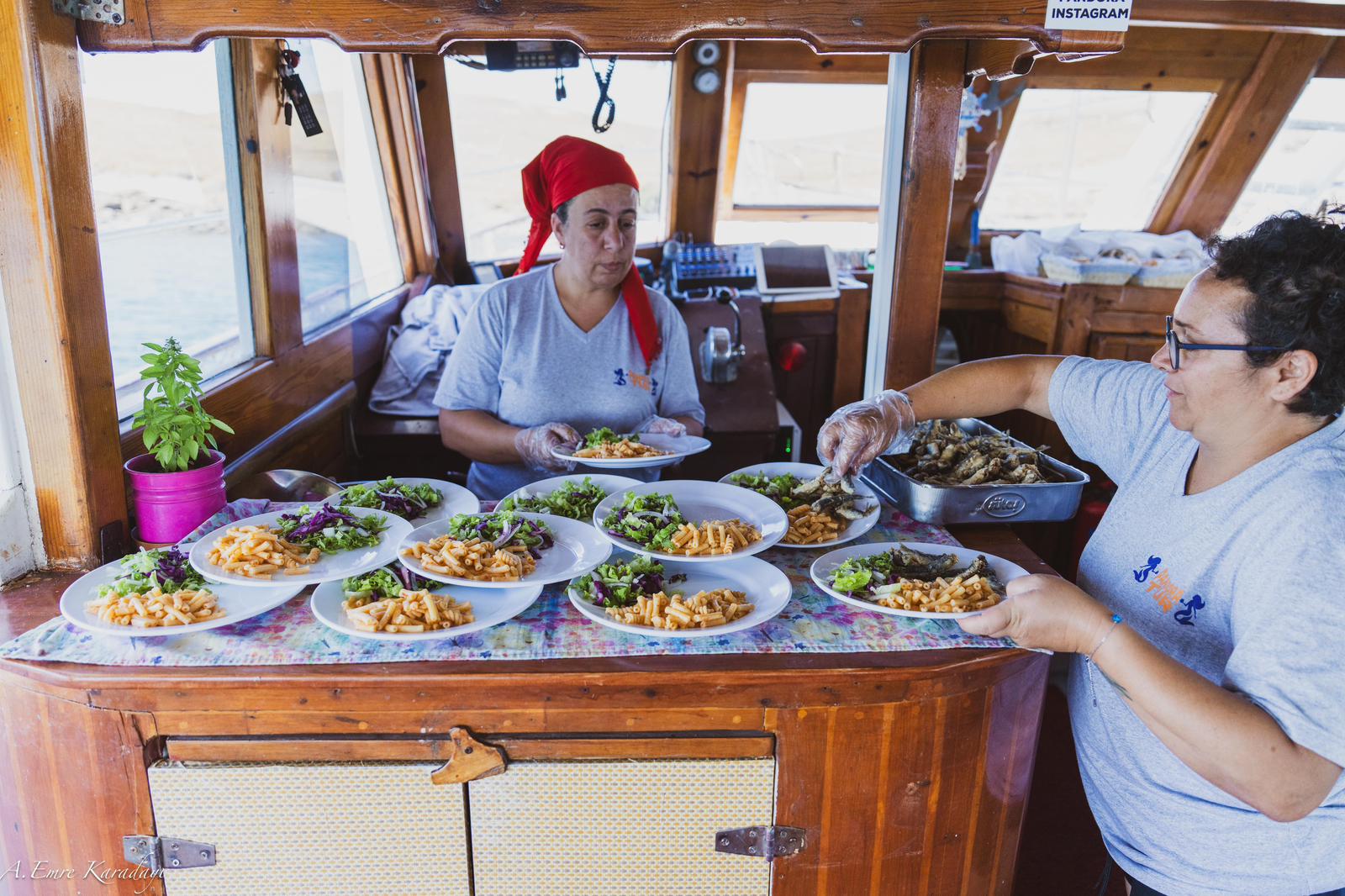 Turumuz 11:30’da başlar, 18:30’a kadar sürer. Gün boyu sürecek bu deniz keyfine lezzet de eşlik ediyor: Balık, salata ve makarna menümüz sınırsız şekilde servis edilir. Gün sonunda ise serinletici karpuz ikramımızla günü tatlı bir şekilde noktalıyoruz.